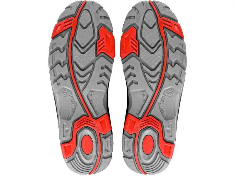 Safety ankle footwear with Thinsulate insulation (grammage 200g), steel toe cap and steel midsole, PVC reflective strip. Material: upper made of 1,6 - 1,8 mm hydrophobic smooth nubuck leather combined with PU accessories, breathable and abrasion resistant textile lining, outsole: PU-rubber, antistatic, oil resistant, antislip, puncture resistant, heat resistant up to 300°C.