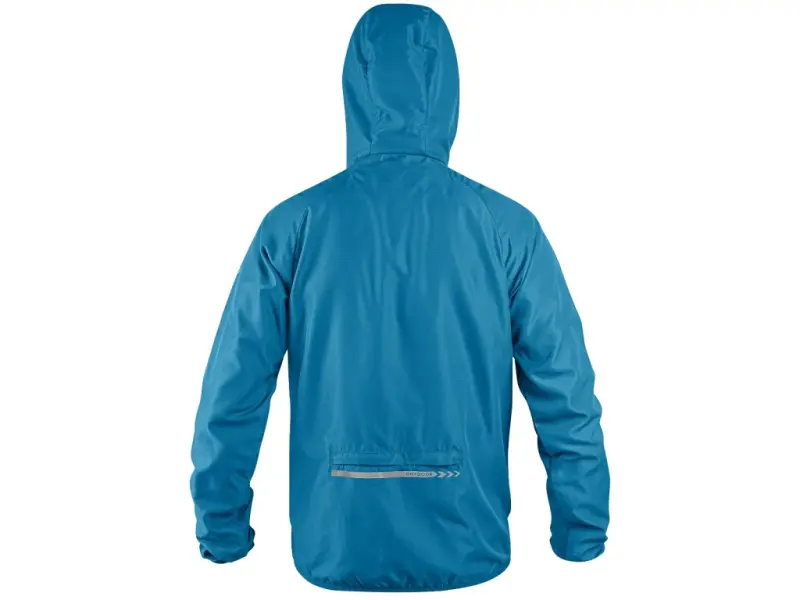 Men’s ultralight jacket with hood and reflective accessories. It is equipped with side zipper pockets and a back pocket with covered zipper, into which the jacket can be easily folded. The waist and sleeves are finished with elasticated elastic. The jacket is made of lightweight material that is treated with a water-repellent finish. The water-repellent treatment is gradually lost by washing, but can be restored with suitable impregnating sprays.