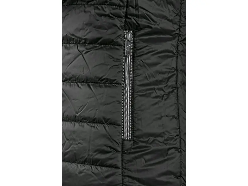 Ladies’ double-sided padded jacket with hood and reflective accessories. The jacket has zipper fastening, sleeves and bottom to the elastic band, 2 side zipper pockets with reflective accessories and side reflective straps on back.