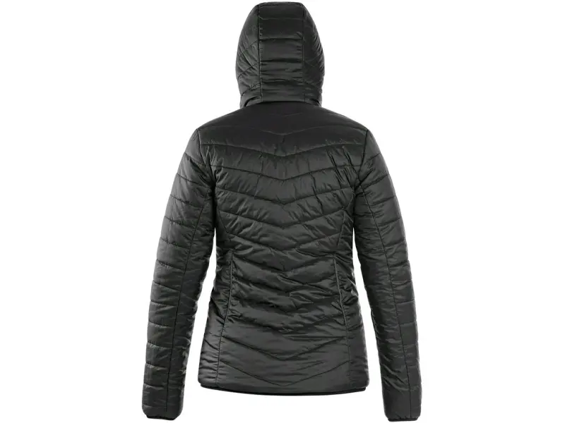 Ladies’ double-sided padded jacket with hood and reflective accessories. The jacket has zipper fastening, sleeves and bottom to the elastic band, 2 side zipper pockets with reflective accessories and side reflective straps on back.