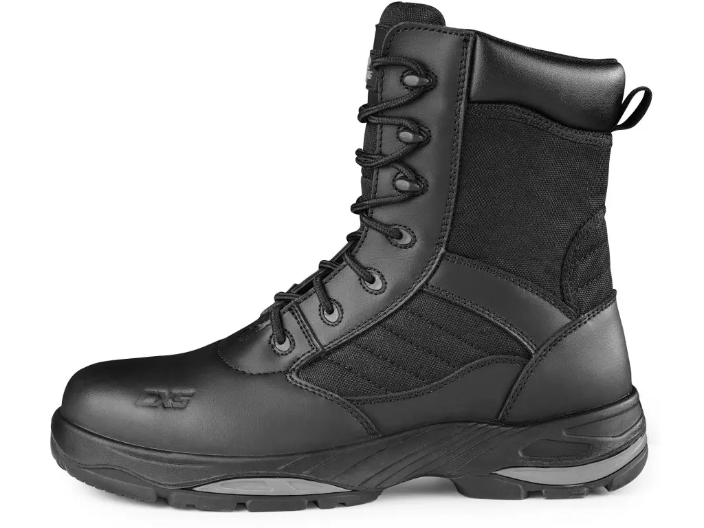 High-cut safety boot, combined design, featuring a composite toe cap and a puncture-resistant Dyna-Flex textile midsole. Material: upper made of 1.6–1.8 mm full-grain cow leather and hydrophobic Oxford fabric; lining made of breathable mesh textile; removable polyurethane foam insole. Outsole: PU-rubber, slip-resistant, antistatic, resistant to fuels and oils, resistant to cold (CI), heat (HI), and contact heat up to 300 °C. Suitable for light to medium-duty environments, such as construction, logistics, crafts, services, or less demanding outdoor work.