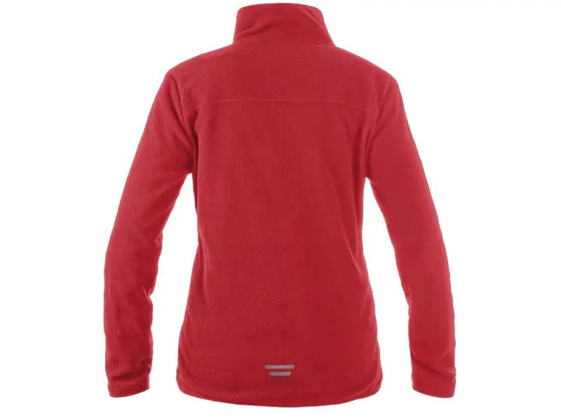 Ladies’ fleece sweatshirt with anti-pilling treatment, zip fastening, sleeves cuffs and length of the sweatshirt ended by elastic ribbon, side zipper pockets, reflective accessories.