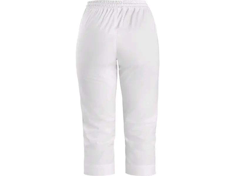 Dámské pohodlné 3/4 kalhoty, pas do gumy se šněrováním, 2 přední prostorné klínové kapsy, nohavice do manžety s rozparkem. Doporučené použití: soukromé ordinace, kliniky a velká zdravotnická zařízení, záchranné a zdravotní dopravní služby, lázeňská zařízení, ústavy sociální péče, lékárny, školy se zdravotnickým a gastro zaměřením.