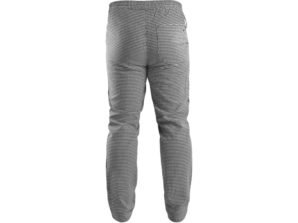 Pánské kuchařské kalhoty v oblíbeném vzoru pepito kombinují pohodlí a funkční detaily pro každodenní práci v gastronomii. Elastický pas s gumou a tkanicí na stažení umožňuje snadné přizpůsobení postavě a zajišťuje komfort i během dlouhého pracovního dne. Přední klínové kapsy a zadní našitá kapsa jsou určeny pro uložení drobností. Na pravém stehně se nachází praktická kapsa na kuchařskou pinzetu nebo tužku, která umožňuje mít důležité pomůcky vždy po ruce. V zadní části pod pasem je navíc poutko na utěrku pro ještě větší praktičnost při práci v kuchyni. Kalhoty jsou vybaveny EASY-PROLONG systémem, který umožňuje snadné prodloužení střihu na vyšší postavu uvolněním kontrastního švu na nohavicích. Doporučené použití: hotelové kuchyně, závodní a školní jídelny, bistra, kuchařské školy, řeznictví.