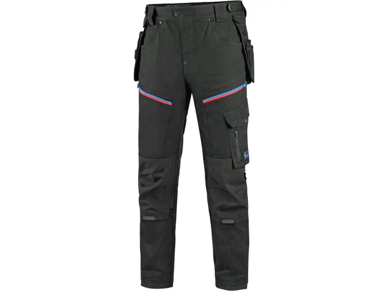 Kalhoty CXS LEONIS, pánské, černé s modro/červenými doplňky, vel. 54