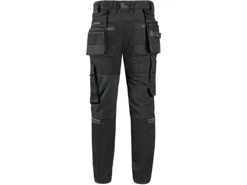 Pánské pracovní kalhoty moderního střihu slim-fit. Kombinace kvalitního směsového materiálu s elastanem a 4-way stretch materiálu v exponovaných místech umožňuje volný a pohodlný pohyb. Vybavení kalhot: flexibilní pas s možností upravení velikosti a poutky na opasek, na vnitřní straně pasu protiskluzový potisk, 2 přední kapsy, 2 odnímatelné kapsy na nářadí vyztuženy materiálem CORDURA®, stehenní zipové kapsy s možností ventilace, boční kapsa se zipovou kapsou, 2 zadní kapsy (jedna zipová) vyztuženy materiálem CORDURA®, kapsa na skládací metr s dalšími přihrádkami, ergonomicky tvarovaná kolena zesílena materiálem CORDURA® s možností vložení kolenních výztuh bočním vkládáním a ventilací, kapsa na ID kartu, spodní část nohavic vyztužena materiálem CORDURA®, reflexní doplňky. Kalhoty jsou vybaveny EASY-PROLONG systémem, který umožňuje snadné prodloužení střihu na vyšší postavu uvolněním švu na nohavicích. Doporučené použití: strojírenství, stavebnictví, lehký průmysl, automobilový průmysl, logistika, skladování, spedice, autoservisy, údržba, montáže, zemědělství, zahrada, hobby a volný čas.
