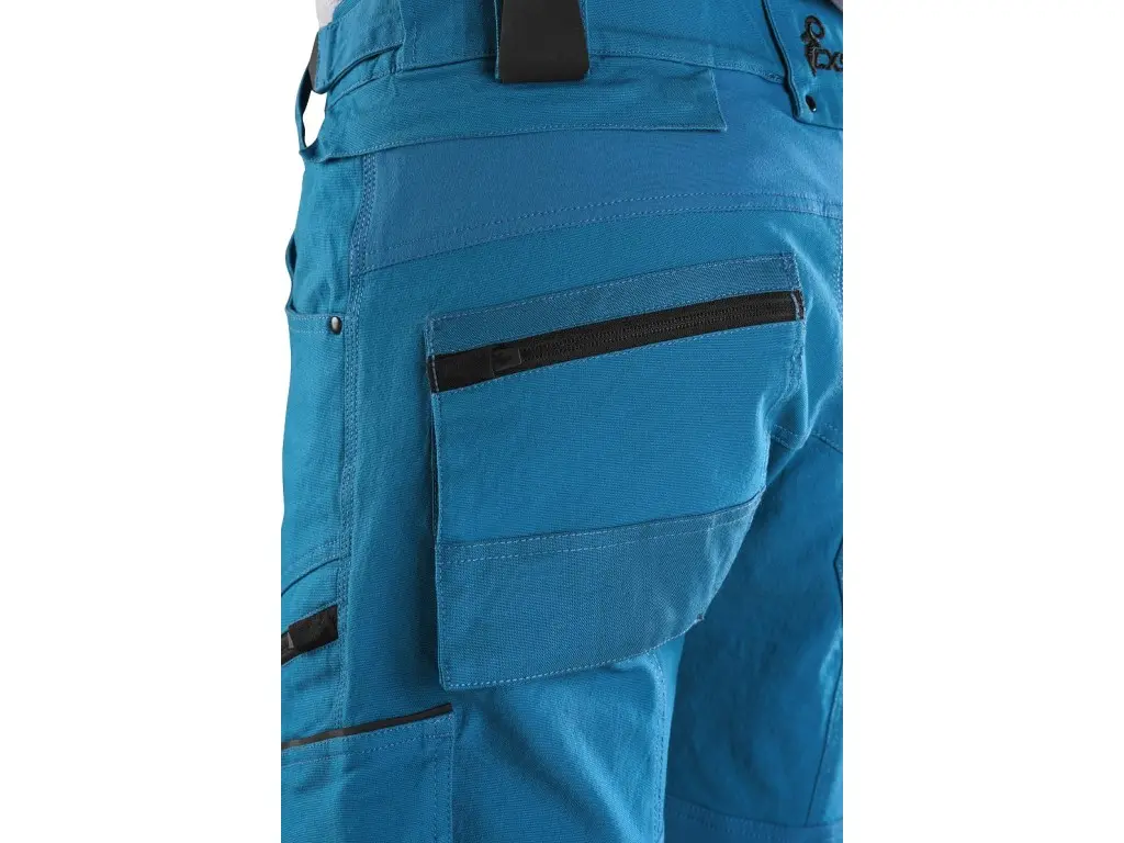 Pánské pracovní kalhoty moderního střihu slim-fit. Kombinace kvalitního směsového materiálu s elastanem a 4-way stretch materiálu v exponovaných místech umožňuje volný a pohodlný pohyb. Vybavení kalhot: flexibilní pas s možností upravení velikosti a poutky na opasek, na vnitřní straně pasu protiskluzový potisk, 2 přední kapsy, 2 odnímatelné kapsy na nářadí vyztuženy materiálem CORDURA®, stehenní zipové kapsy s možností ventilace, boční kapsa se zipovou kapsou, 2 zadní kapsy (jedna zipová) vyztuženy materiálem CORDURA®, kapsa na skládací metr s dalšími přihrádkami, ergonomicky tvarovaná kolena zesílena materiálem CORDURA® s možností vložení kolenních výztuh bočním vkládáním a ventilací, kapsa na ID kartu, spodní část nohavic vyztužena materiálem CORDURA®, reflexní doplňky. Kalhoty jsou vybaveny EASY-PROLONG systémem, který umožňuje snadné prodloužení střihu na vyšší postavu uvolněním švu na nohavicích. Doporučené použití: strojírenství, stavebnictví, lehký průmysl, automobilový průmysl, logistika, skladování, spedice, autoservisy, údržba, montáže, zemědělství, zahrada, hobby a volný čas.