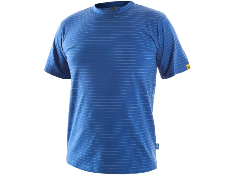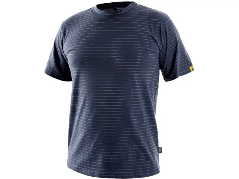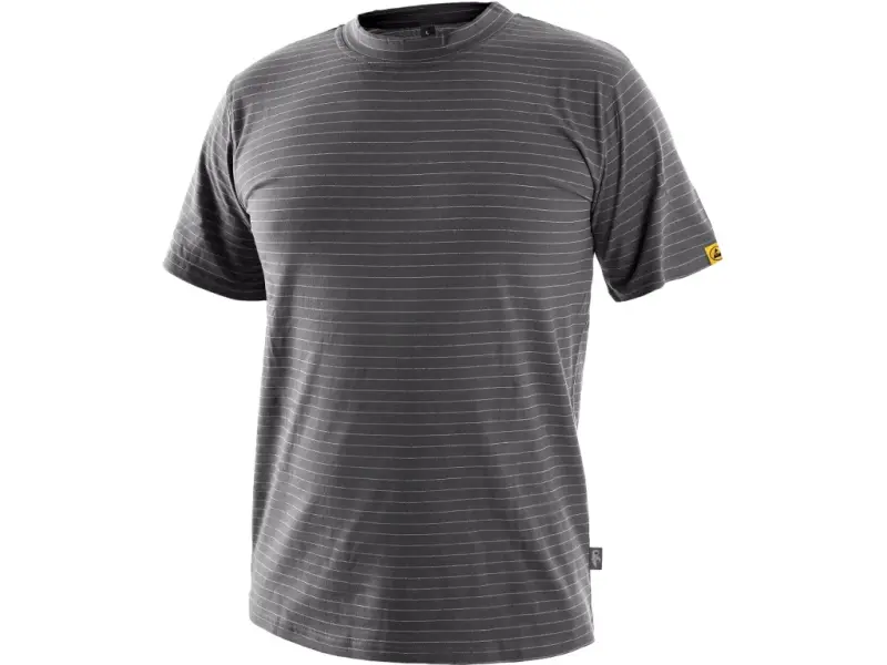 Antistatické tričko s krátkým rukávem, kulatý průkrčník, zdvojené švy, postranní švy. Doporučené použití: ESD prostředí, obsluha CNC strojů a robotů.