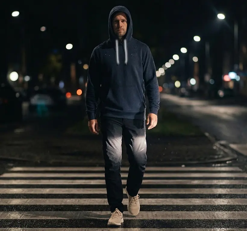 Výsledek? Jste vidět mnohem hůř, než si myslíte. A právě tady reflexní prvky fungují nejlépe – protože reagují na světla okolí (auta, stroje). Výstražné barvy navíc proniknou k lidskému oku skrze mlhu lépe než tmavé nebo neutrální odstíny.