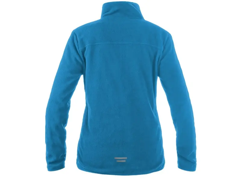 Damska bluza polarowa niepodatna na mechacenie, zapinana na zamek, mankiet rękawu i długość kurtki zakończony gumką, kieszenie boczne na zamek, elementy odblaskowe.