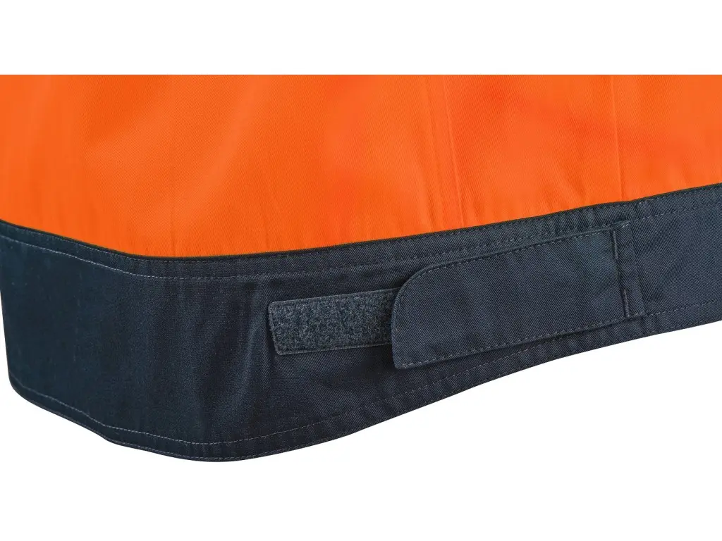 Męska bluza ostrzegawcza CXS HALIFAX przeznaczona jest do pracy w sezonie letnim. Wyposażona w segmentowe taśmy odblaskowe o szerokości 5 cm, które zapewniają doskonałą widoczność i jednocześnie zachowują elastyczność materiału. Bluza zapinana jest na zamek ukryty pod patką z metalowymi zatrzaskami. Posiada kieszenie na piersi z klapką na rzep i ukrytymi kieszeniami na zamek, a także boczne kieszenie na zamek. Mankiety rękawów i dolny brzeg bluzy można regulować za pomocą rzepów. Pod pachami i na plecach zastosowano siateczkowy materiał, który wspomaga mikrocyrkulację powietrza i odprowadzanie ciepła. W połączeniu ze spodniami lub ogrodniczkami, bluza CXS HALIFAX spełnia normę EN ISO 20471, klasa 3. Zalecane zastosowanie: letnia odzież robocza, budownictwo, prace drogowe, logistyka, konserwacja, kierowcy, transport lotniczy i morski, ratownicy, służby techniczne.