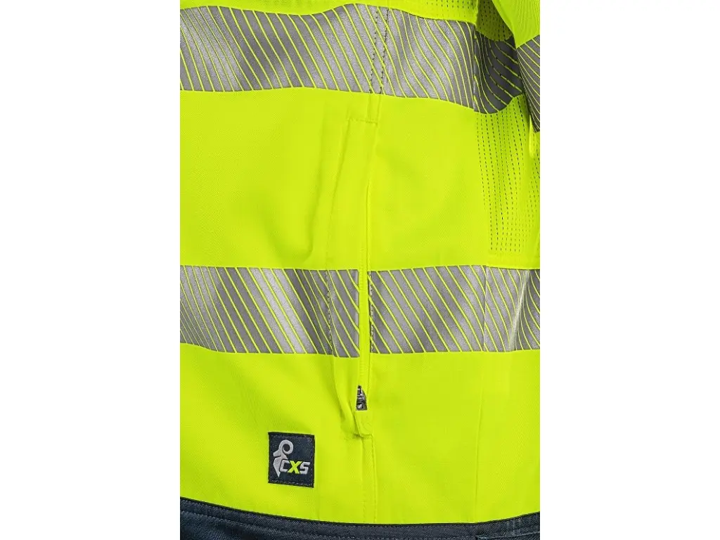 Męska bluza ostrzegawcza CXS HALIFAX przeznaczona jest do pracy w sezonie letnim. Wyposażona w segmentowe taśmy odblaskowe o szerokości 5 cm, które zapewniają doskonałą widoczność i jednocześnie zachowują elastyczność materiału. Bluza zapinana jest na zamek ukryty pod patką z metalowymi zatrzaskami. Posiada kieszenie na piersi z klapką na rzep i ukrytymi kieszeniami na zamek, a także boczne kieszenie na zamek. Mankiety rękawów i dolny brzeg bluzy można regulować za pomocą rzepów. Pod pachami i na plecach zastosowano siateczkowy materiał, który wspomaga mikrocyrkulację powietrza i odprowadzanie ciepła. W połączeniu ze spodniami lub ogrodniczkami, bluza CXS HALIFAX spełnia normę EN ISO 20471, klasa 3. Zalecane zastosowanie: letnia odzież robocza, budownictwo, prace drogowe, logistyka, konserwacja, kierowcy, transport lotniczy i morski, ratownicy, służby techniczne.