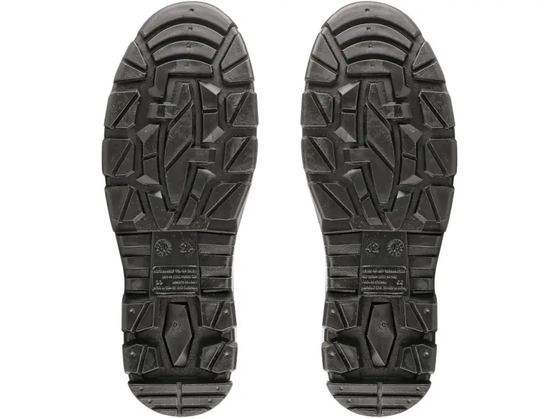 Kalosze ochronne ze kompozytowym noskiem, elementy odblaskowe. Absorpcja energii w części pięty. Podeszwa przeciwpoślizgowa, antystatyczna, olejoodporna.