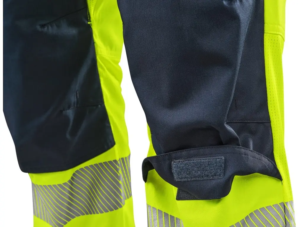 Męskie ogrodniczki ostrzegawcze CXS HALIFAX przeznaczone są do pracy w okresie letnim. Wyposażone są w segmentowe taśmy odblaskowe o szerokości 8 cm, które zapewniają wysoką widoczność, jednocześnie zachowując elastyczność materiału. Regulowane szelki z gumką z tyłu umożliwiają swobodę ruchu i wygodne noszenie. Spodnie mają pas ze szlufkami na pasek i boczne zapięcie na guziki, zakryty zamek błyskawiczny oraz szereg praktycznych kieszeni – kieszeń na piersi z zamkiem, dwie kieszenie przednie, dwie tylne z klapką na rzep oraz prawą kieszeń boczną na zamek. Wzmocnione kolana zwiększają wytrzymałość i umożliwiają włożenie nakolanników, co podnosi komfort pracy w pozycji klęczącej. Po wewnętrznej stronie ud i z tyłu kolan zastosowano materiał siatkowy w celu poprawy mikrocyrkulacji powietrza i odprowadzania ciepła. W połączeniu z bluzą CXS HALIFAX spodnie spełniają normę EN ISO 20471 klasa 3. System EASY-PROLONG umożliwia proste przedłużenie spodni dla wyższej sylwetki. Zalecane zastosowanie: letnia odzież robocza, budownictwo, prace drogowe, logistyka, konserwacja, kierowcy, transport lotniczy i morski, służby ratunkowe, usługi techniczne.