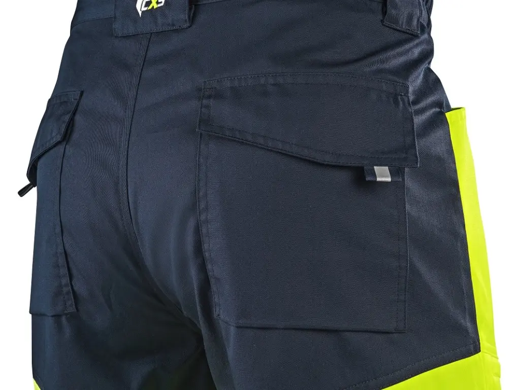 Męskie spodnie ostrzegawcze CXS HALIFAX przeznaczone są do pracy w okresie letnim. Wyposażone są w segmentowe taśmy odblaskowe o szerokości 8 cm, które zapewniają wysoką widoczność, jednocześnie zachowując elastyczność materiału. Spodnie mają elastyc