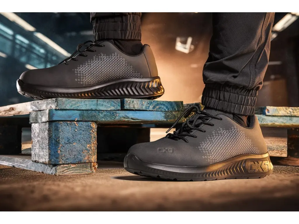 Półbuty ochronne z kompozytowym podnoskiem i tekstylną wkładką antyprzebiciową są uniwersalne, trwałe i komfortowe, a dodatkowo wyposażone w element odblaskowy na pięcie. Obuwie jest odpowiednie do codziennego, całorocznego użytkowania w szerokim zakresie środowisk pracy. Cholewka wykonana z wytrzymałego, gładkiego mikrowłókna jest łatwa w pielęgnacji i charakteryzuje się długą żywotnością. Podszewka z oddychającej tkaniny Mesh w połączeniu z mikrowłóknem oraz wkładką HI-POLY zapewnia optymalny komfort wewnątrz obuwia, nawet podczas długotrwałego noszenia. Podeszwa PU–PU z logo CXS jest antypoślizgowa, odporna na oleje i w obszarze pięty oferuje doskonały zwrot energii, co przyczynia się do zmniejszenia zmęczenia stóp.
