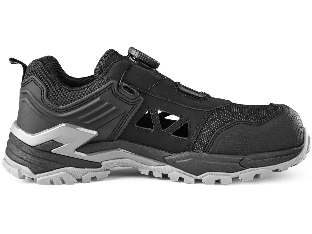 Półbut roboczy ESD z oddychającą cholewką, kompozytowym noskiem i tekstylną antypenetrującą wkładką, elementy odblaskowe. Specjalny system zapinania pozwala na szybkie zdejmowanie butów. Materiał: perforowana tekstylna cholewka z poliestru, nosek z T