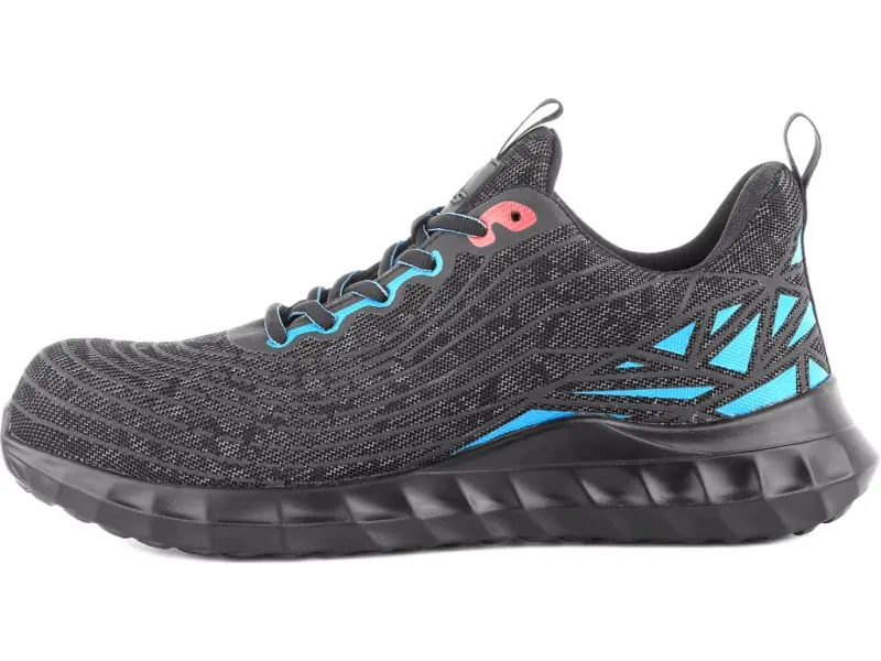 Półbut roboczy, textylny, z kompozytowym noskiem i tekstylną antypenetrującą wkładką, elementy odblaskowe. Materiał: mesh cholewka z wytrzymałego i oddychającego 2,0mm poliestru z możliwością prania do 30°C, elementy z PU, oddychająca podszewka z włókniny, wewnętrzne wzmocnienie pięty mikrowłóknem, podeszwa: PU, przeciwpoślizgowa, olejoodporna, antystatyczna, odporna na przebicie.