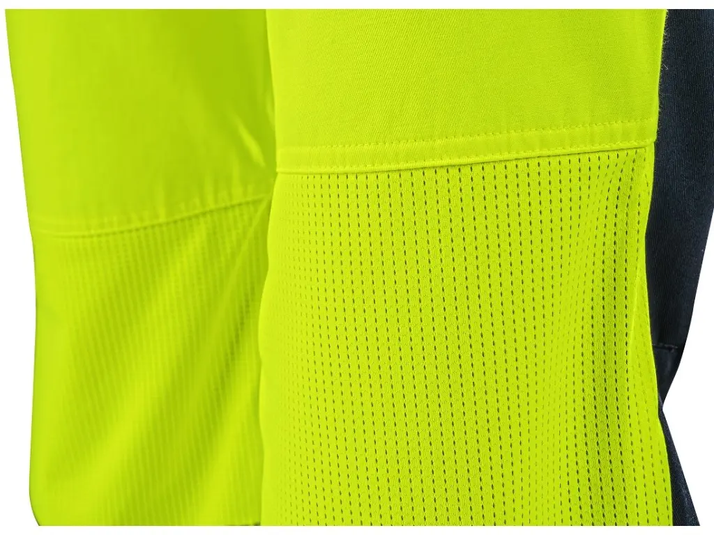 Męskie spodnie ostrzegawcze CXS HALIFAX przeznaczone są do pracy w okresie letnim. Wyposażone są w segmentowe taśmy odblaskowe o szerokości 8 cm, które zapewniają wysoką widoczność, jednocześnie zachowując elastyczność materiału. Spodnie mają elastyczny pas z gumką po bokach i szlufki na pasek. Kryte zapięcie na zamek, dwie kieszenie przednie, dwie tylne kieszenie z patką na rzep oraz prawa boczna kieszeń na zamek oferują praktyczne miejsce do przechowywania. Wzmocnione kolana zwiększają wytrzymałość i umożliwiają włożenie nakolanników, co podnosi komfort pracy w pozycji klęczącej. Po wewnętrznej stronie ud i z tyłu kolan zastosowano materiał siatkowy w celu poprawy mikrocyrkulacji powietrza i odprowadzania ciepła. W połączeniu z bluzą CXS HALIFAX spodnie spełniają normę EN ISO 20471 klasa 3. System EASY-PROLONG umożliwia proste przedłużenie spodni dla wyższej sylwetki. Zalecane zastosowanie: letnia odzież robocza, budownictwo, prace drogowe, logistyka, konserwacja, kierowcy, transport lotniczy i morski, służby ratunkowe, usługi techniczne.