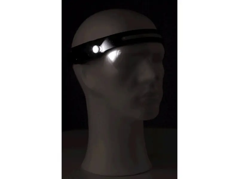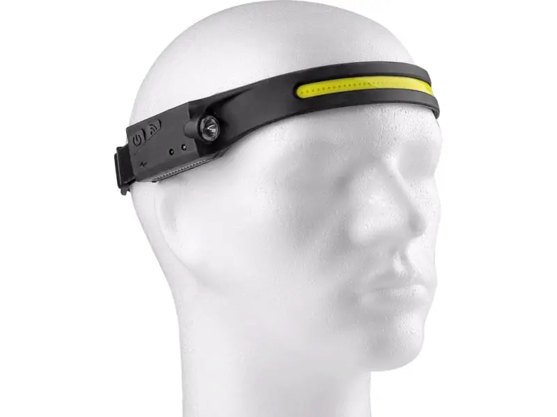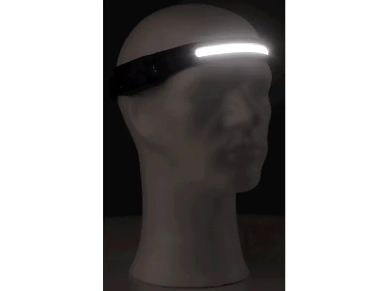 Latarka czołowa z paskiem XPE LED i bocznym światłem COB LED, wodoodporna IP X4. Ładowanie za pomocą kabla USB-C dołączonego do zestawu. Czujnik ruchu do wygodnego wyłączania. Pasek wykonany z elastycznego materiału umożliwia regulację rozmiaru w zależności od obwodu głowy.