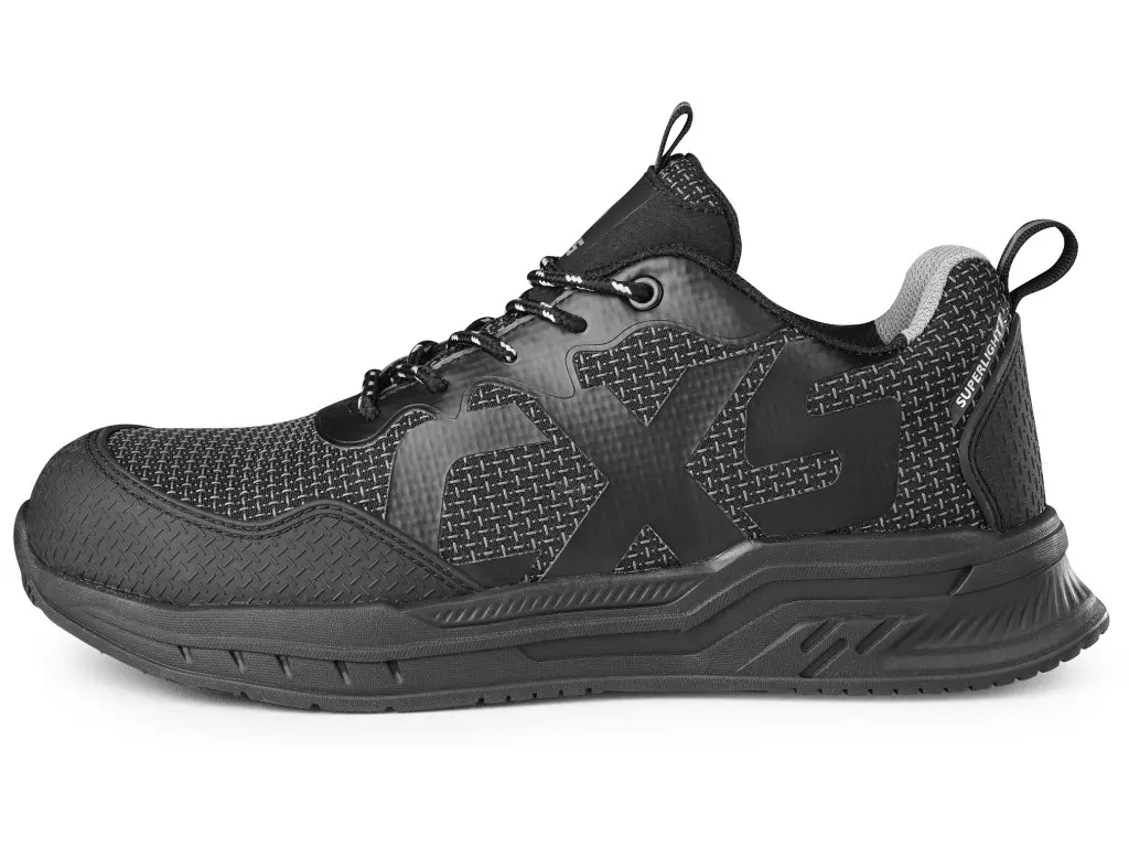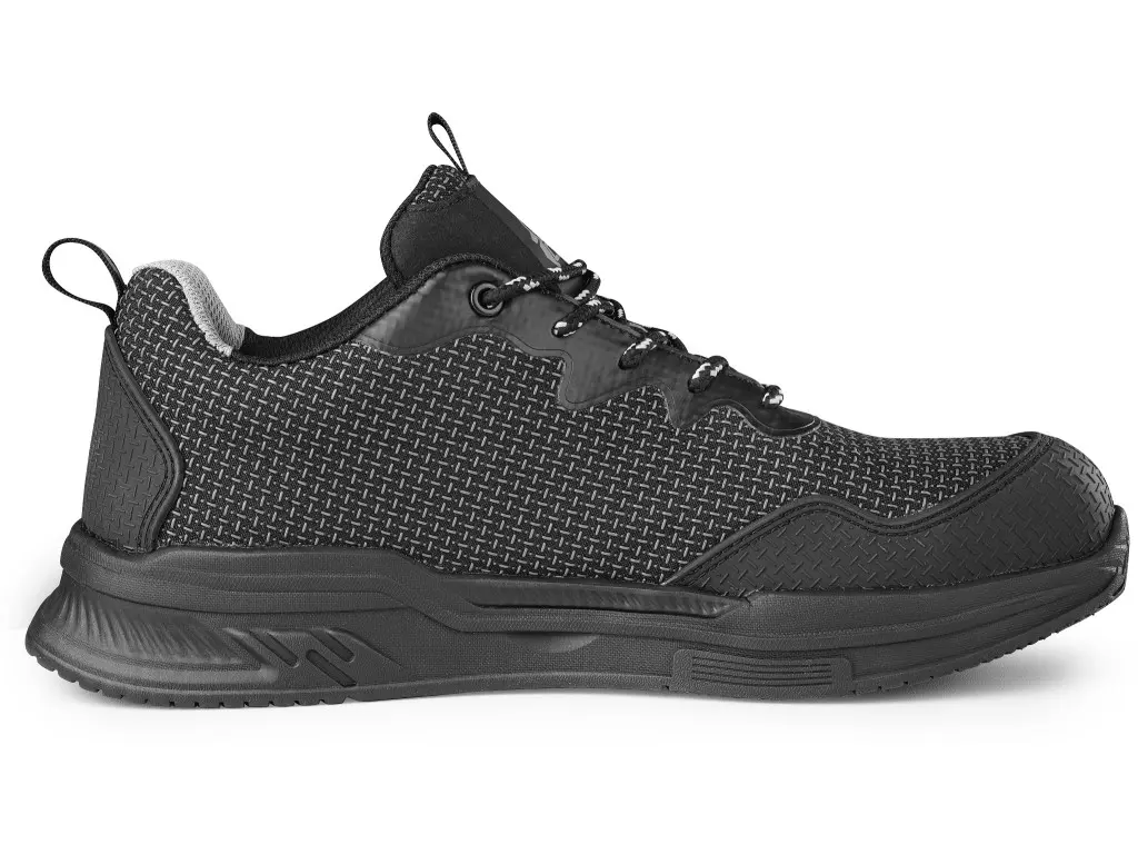 Bezpečnostní polobotka, bez kovových součástí, reflexní doplňky. Materiál: kompozitová špice a textilní antipenetrační planžeta, svršek z 2 mm odolného materiálu PU-TEK (nylon potažený rezistentní TPU vrstvou), patní i okopová část ze strukturovaného TPU materiálu. Textilní podšívka s ochranou vnitřní patní části z mikrovlákna, pohodlná vyjímatelná stélka z vysokohustotné polyesterové pěny. Podešev: velmi lehká, protiskluzová, antistatická, olejivzdorná, jednohustotná podešev z lehčené pěnové pryže. Obuv je vhodná do široké škály pracovních provozů, kde je potřeba chránit nohy, například ve výrobě, skladech, dílnách, stavebnictví, údržbě, technických službách i logistice.